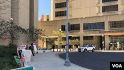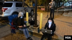美美国之音中文部记者海伦大选日在弗吉尼亚州一处投票站采访和报道。