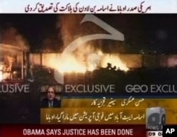 GEO的电视画面显示,恐怖份子头目本拉登被击毙的建筑冒起大火