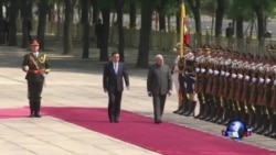 印度总理莫迪结束西安极具象征性的活动后,在北京受到东道主李克强总理的正式欢迎。莫迪在人民大会堂东门外检阅了中国人民解放军三军仪仗队。红地毯欢迎结束后,两国总理举行会谈,期间签署100亿美元的24项协议,其中包括增设总领馆。